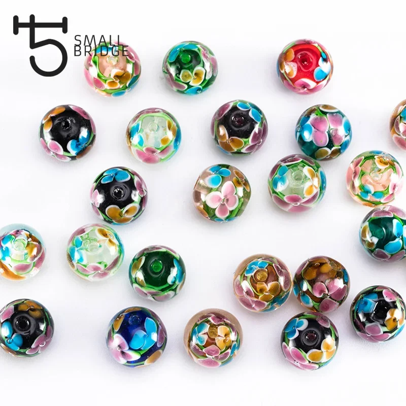 These 12mm Murano lampwork glass beads are handcrafted with beautiful floral details.