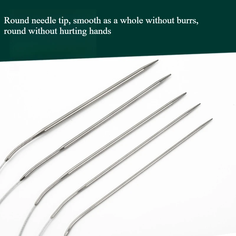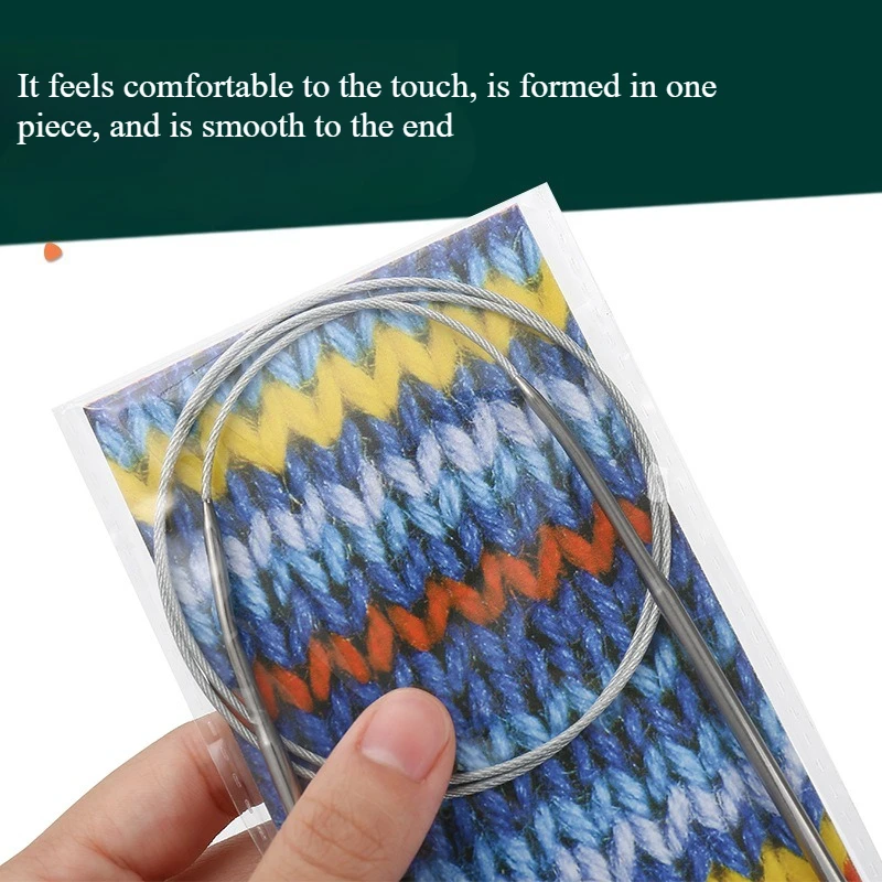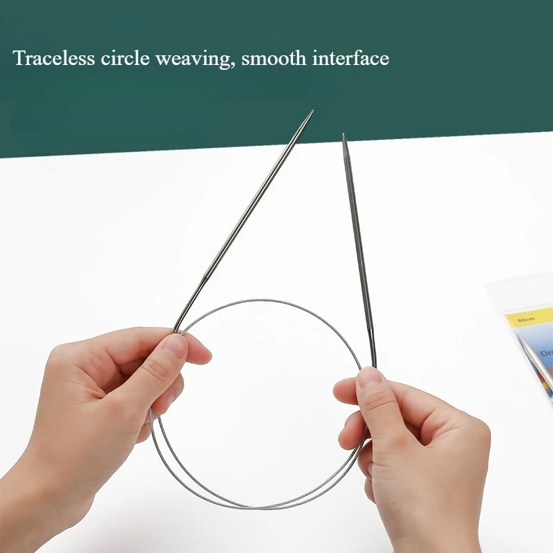 Upgrade your crafting experience with these stainless steel circular knitting needles. Designed with a flexible loop cable, they are perfect for seamless knitting projects. The smooth metal surface allows yarn to glide easily for consistent stitches. Available in sizes ranging from 2.0mm to 10mm to suit various yarn types. Ideal for knitting hats, socks, sleeves, and other round or large projects. The sturdy stainless steel construction ensures durability and long-term use. Lightweight and comfortable, they reduce hand fatigue during extended sessions. The flexible cable prevents tangling and provides better control while working. Suitable for both beginners and advanced knitters. A versatile and essential tool for any DIY knitting or weaving collection.